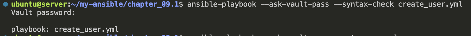 - 문법 체크시 --ask-vault-pass를 통해서 진행하면 확인이 가능