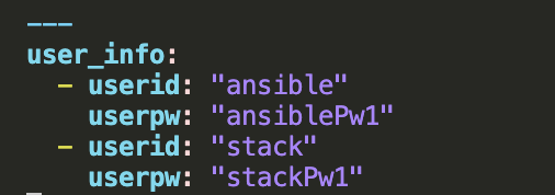 2) 사용자 계정 정보가 정의된 변수 파일을 생성