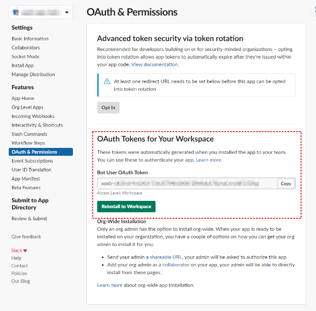해당 내용 현재는 User와 Bot의 토큰 범위가 구분되고 있습니다.)