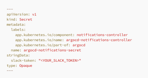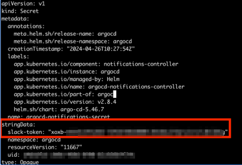 먼저, argocd namespace에 있는 argocd-notifications-secret을 위와 같이 설정합니다.