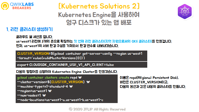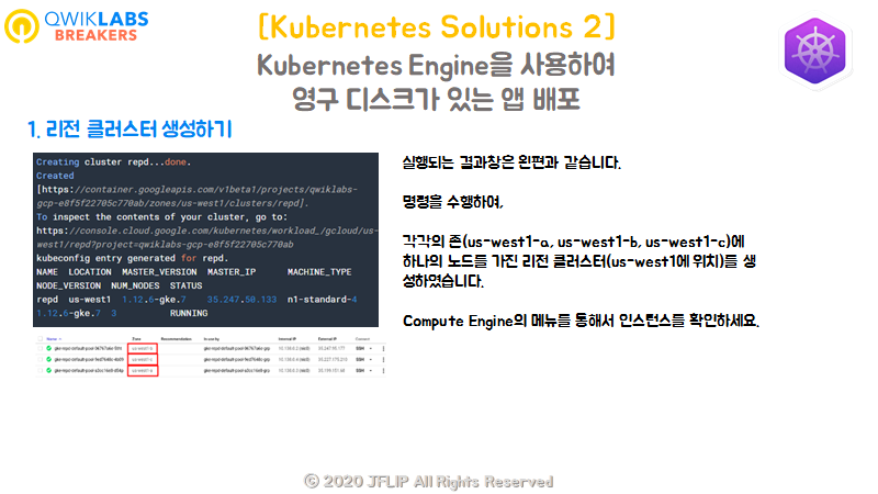 (us-west1-a, us-west1-b, us-west1-c에 persistent Disk를 만들어라!)