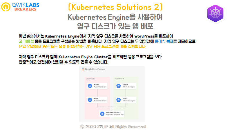 쿠버네티스 엔진 클러스터와 지역 영역 디스크를 사용해 고 가용성의 서비스가 가능한 워드프레스