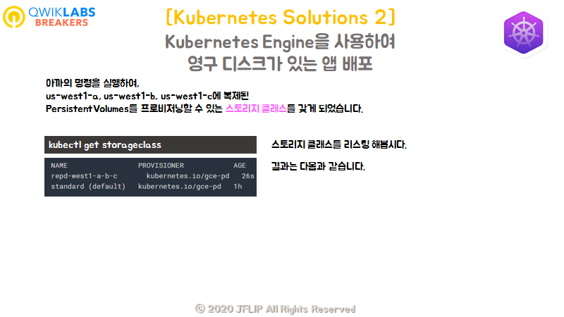 이제 스토리지 클래스도 구성이 되어 있고, 쿠버네티스가 자동으로 사용 가능한 영역(존)에 하나의 적절한 노드를