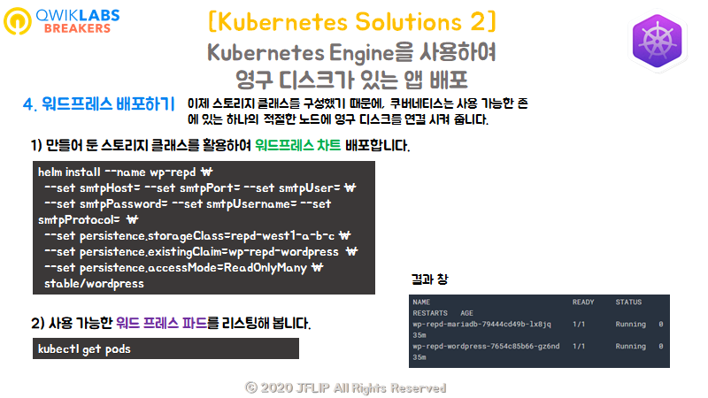 1) 만들어 둔 스토리지 클래스를 활용해, 워드프레스 차트를 배포할 수 있습니다.