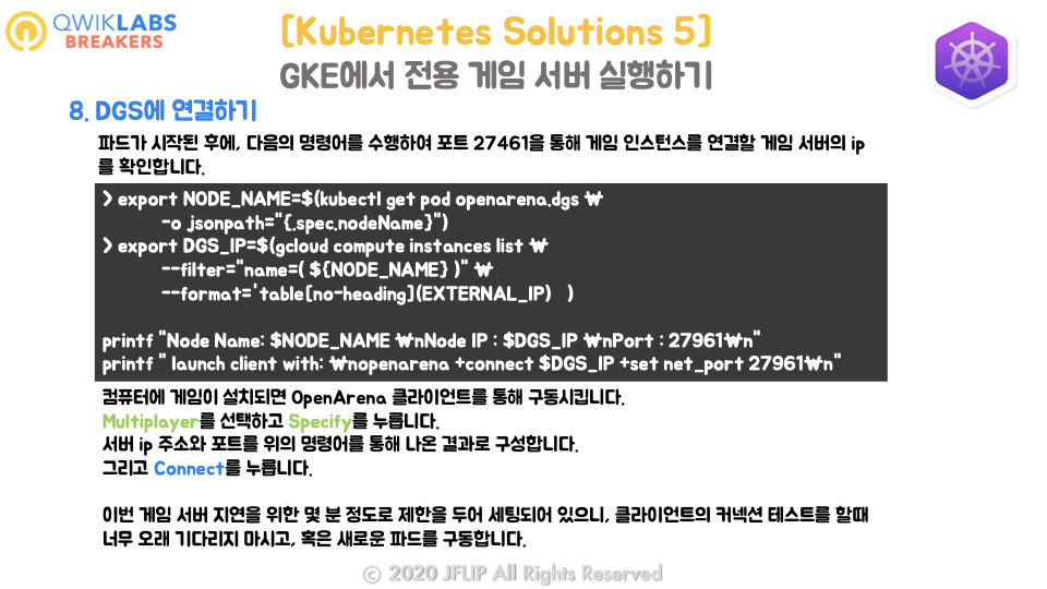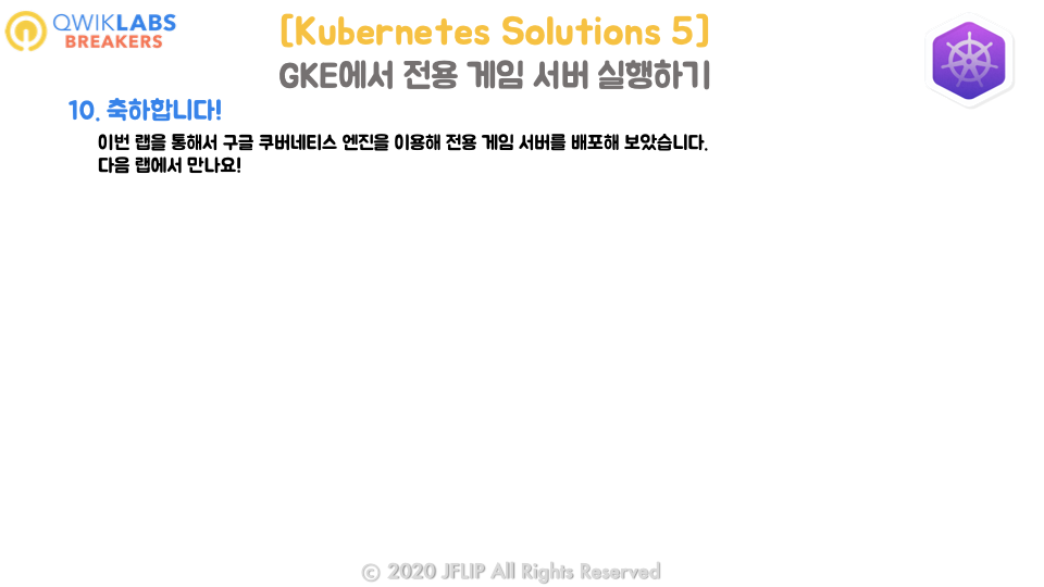 이번 랩을 통해서 구글 쿠버네티스 엔진을 이용한 전용 게임 서버 배포를 해보았습니다!