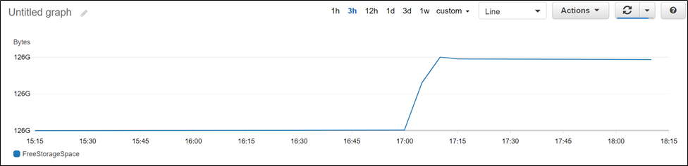 그림 3) FreeStorageSpace의 경우 인스턴스 재시작 이후 증가한 것을 확인하였습니다.
