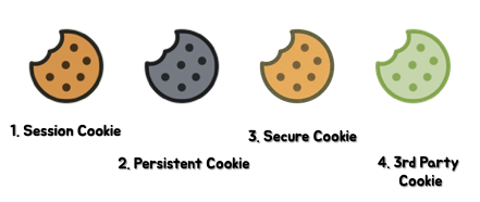 쿠키는 세션 쿠키, 영구 쿠키, 보안 쿠키, 서드파티 쿠키 등이 있습니다.