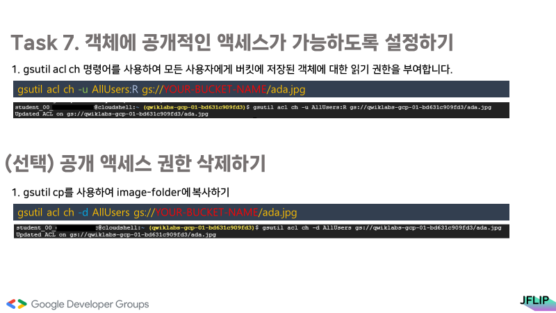 gsutil acl ch -d AllUsers gs://YOUR-BUCKET-NAME/ada.jpg
