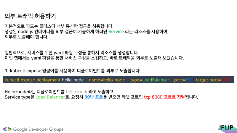 kubectl expose deployment hello-node --name=hello-node --type=LoadBalancer --port=80 --target-port=8080