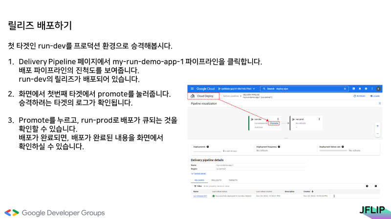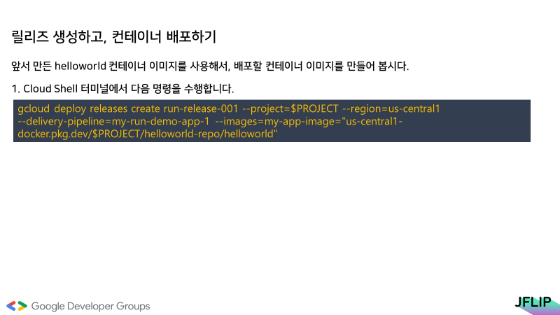 gcloud deploy releases create run-release-001 --project=$PROJECT --region=us-central1