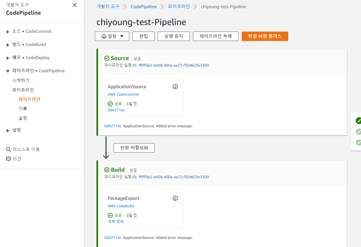 모든 과정이 AWS codepipeline을 통해서 오케스트레이션이 가능합니다.