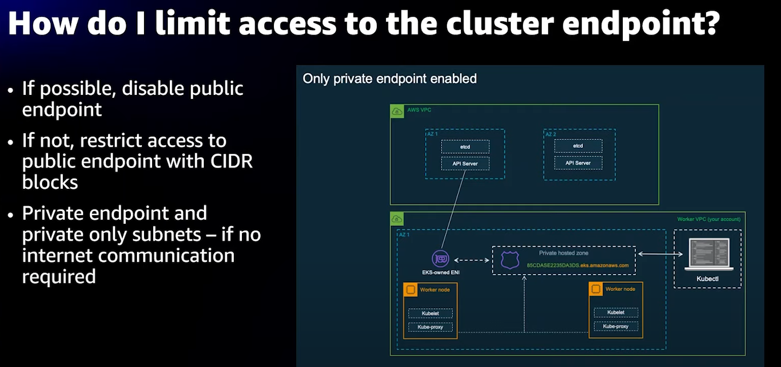 또한, AWS는 클러스터에 대한 프라이빗 엔드포인트를 제공합니다.