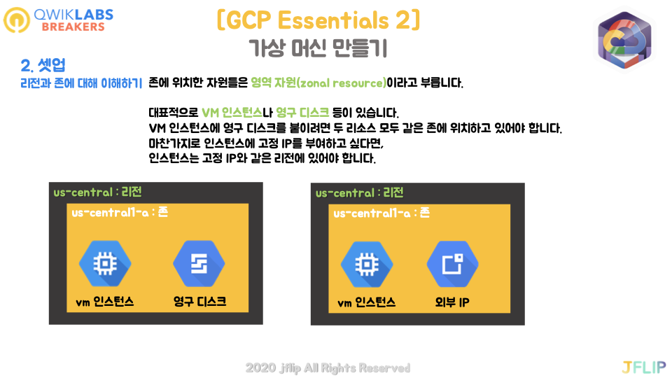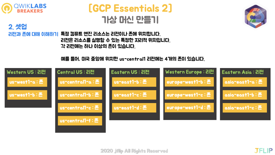 GCP 리소스들은 특정 리전이나 존에 위치합니다.