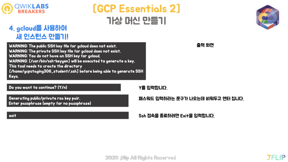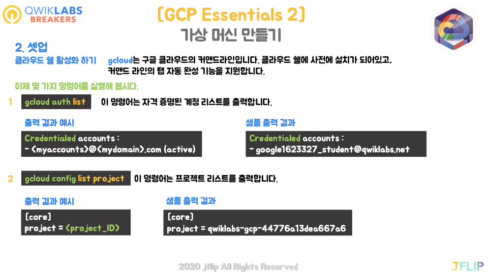 gcloud에서 다음과 같은 명령어를 실행해 봅시다.