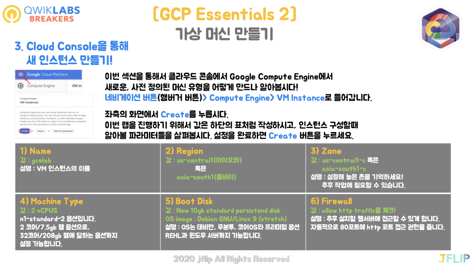 오늘의 핵심 내용은 가상 머신을 GCP 상에서 만드는 것입니다.