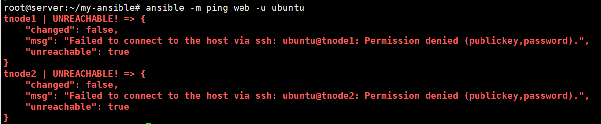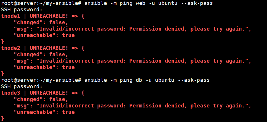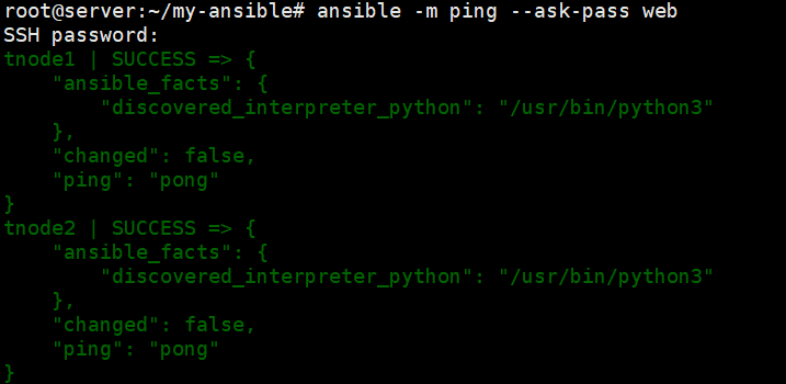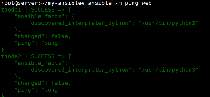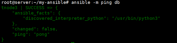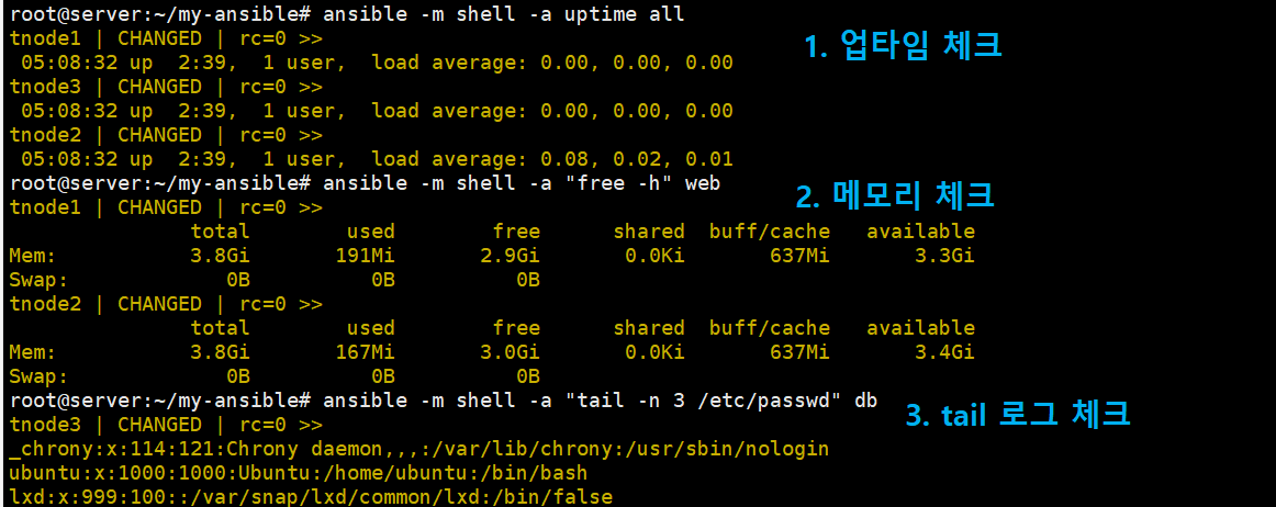 ansible -m shell -a "tail -n 3 /etc/passwd" db