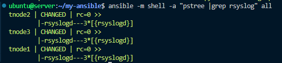 ansible -m shell -a "pstree |grep rsyslog" all