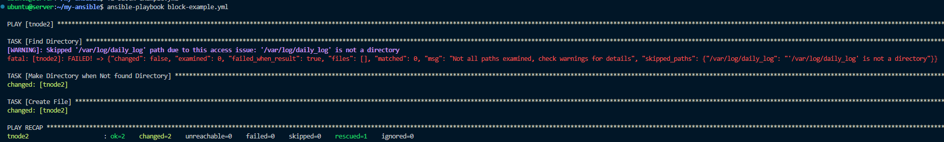 앤서블은 블록 block이라는 오류를 제어하는 문법을 제공합니다.